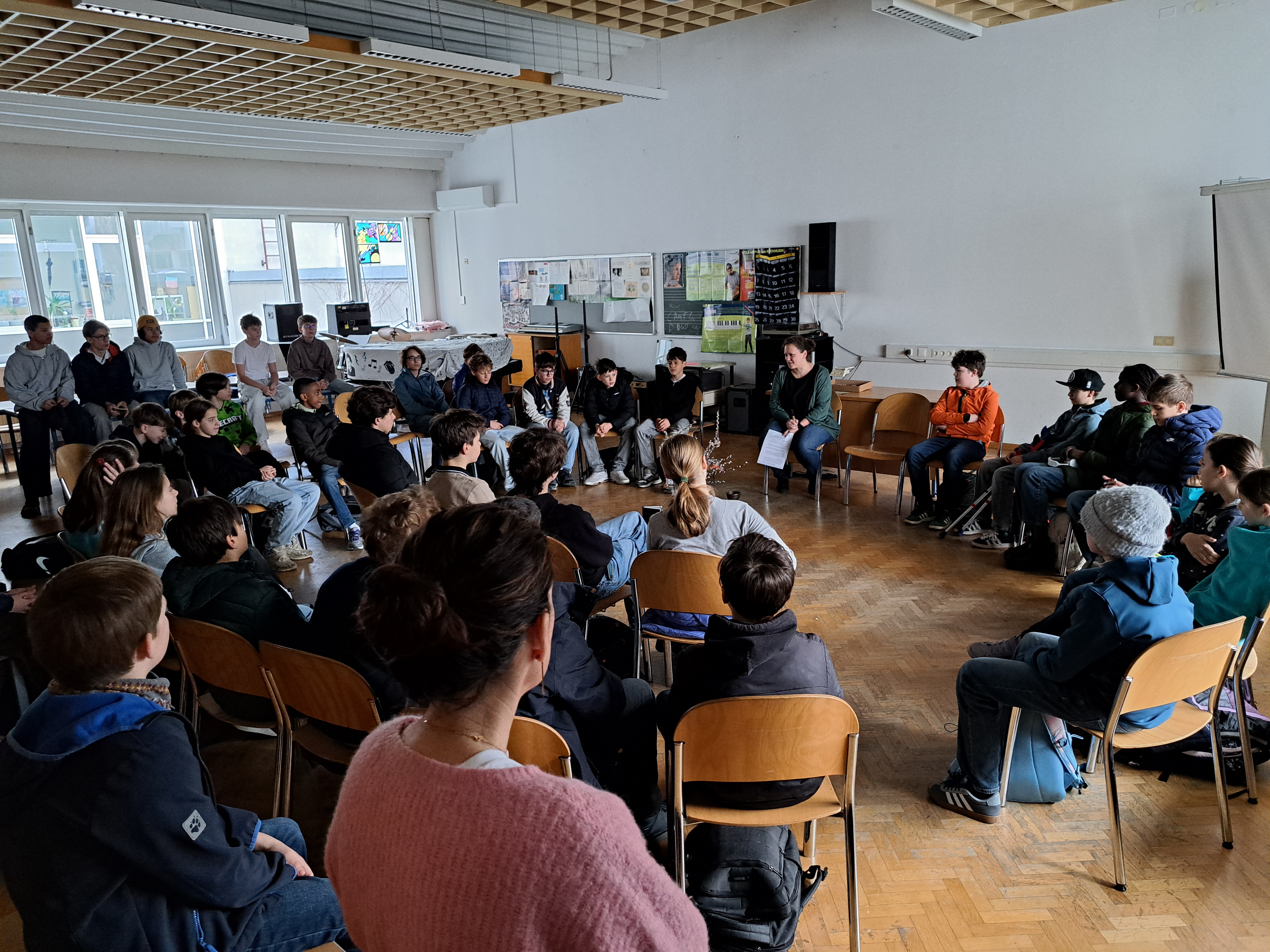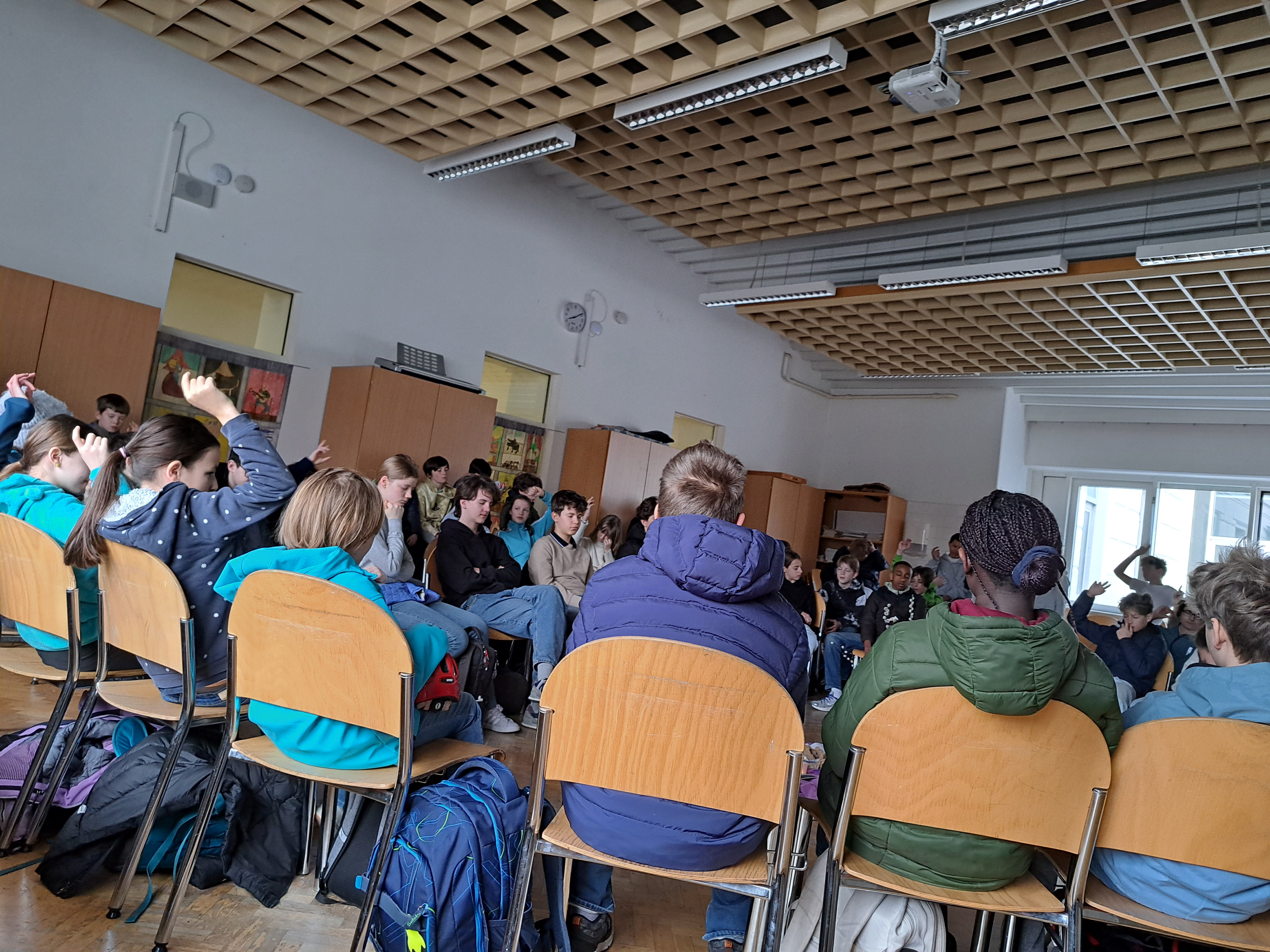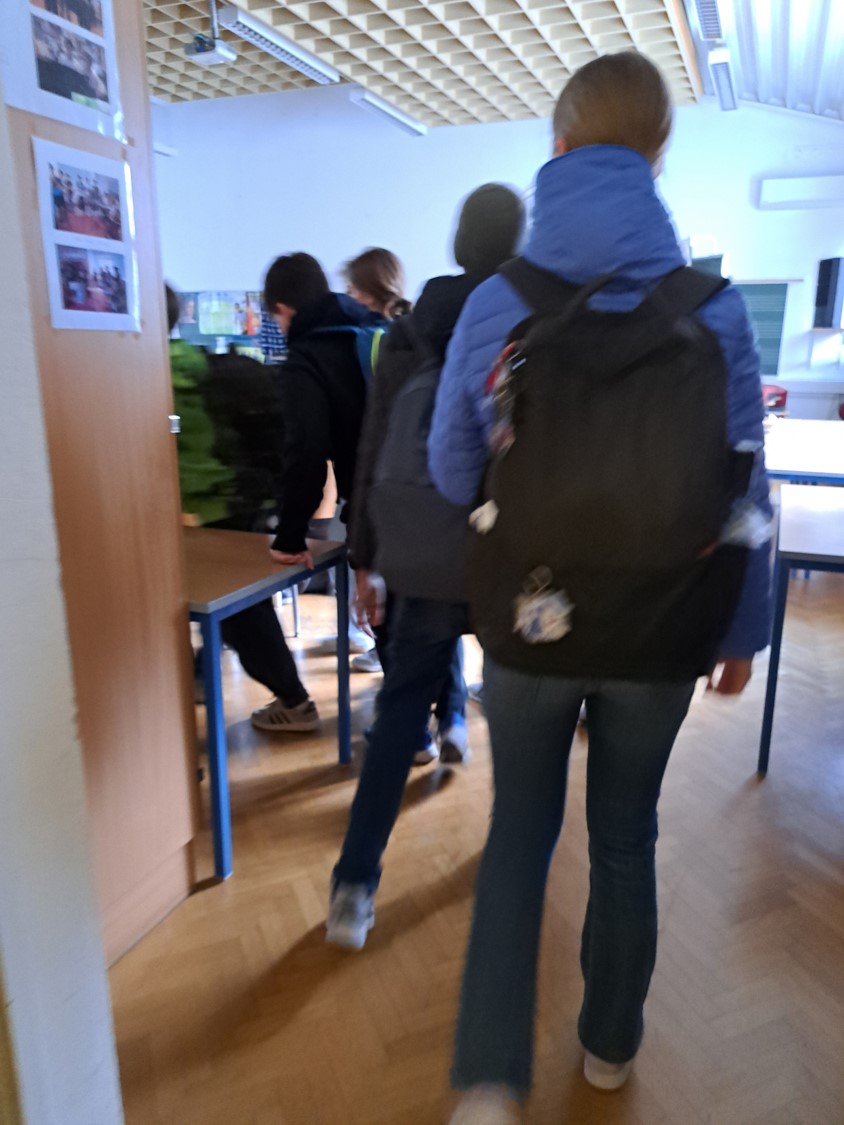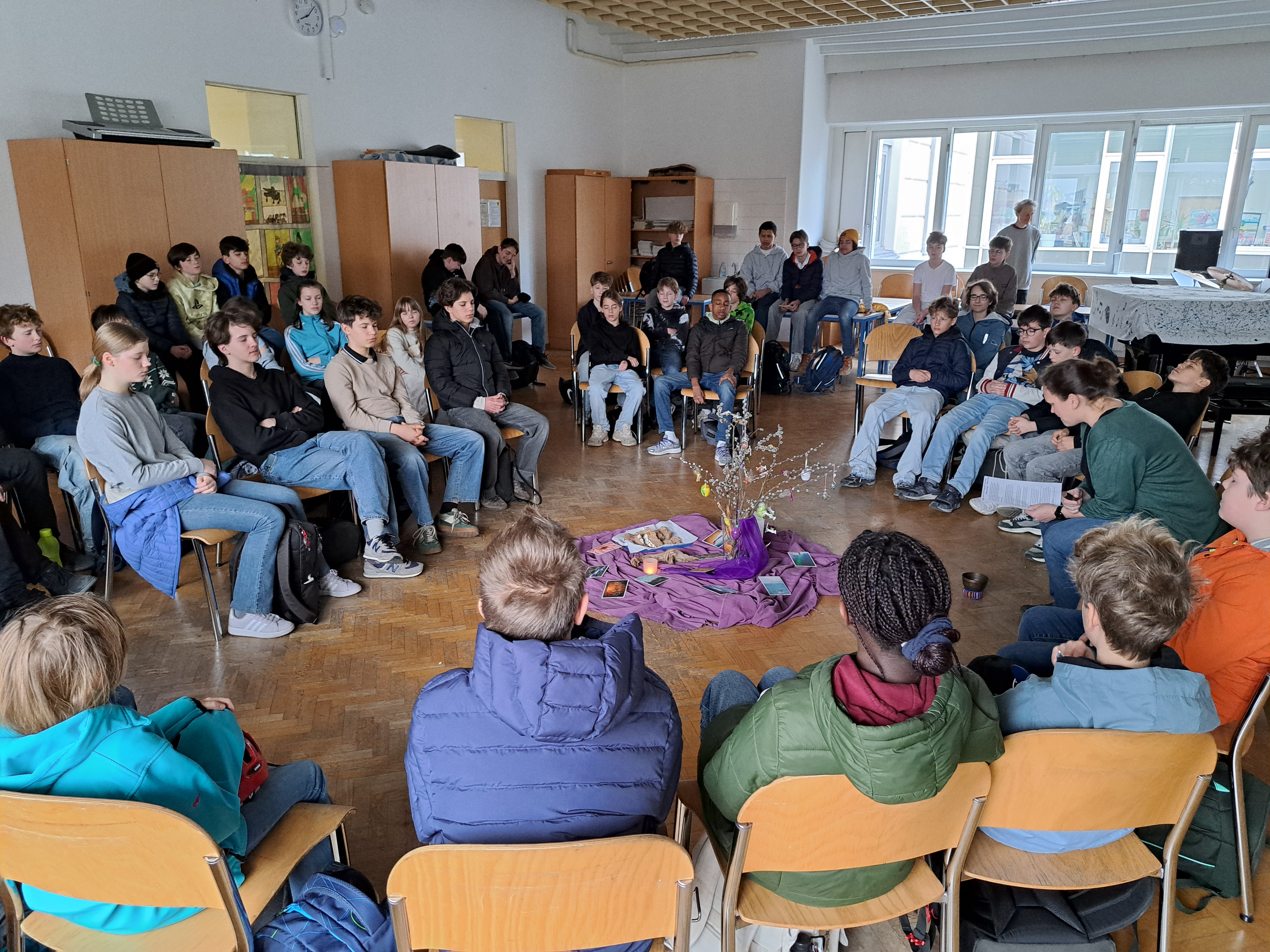 Schüler:innen treffen im Musiksaal ein...ich bin dabei beim Morgenstart mit Besinnung... |