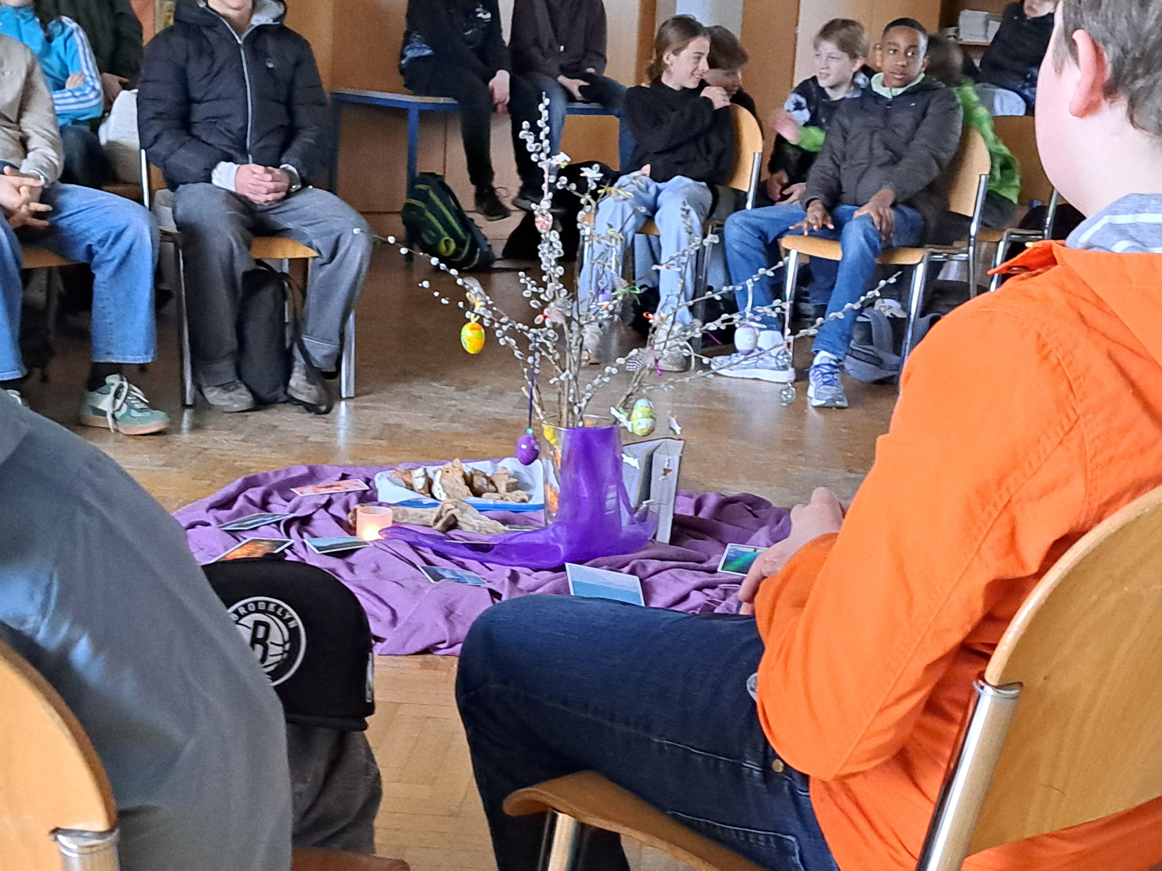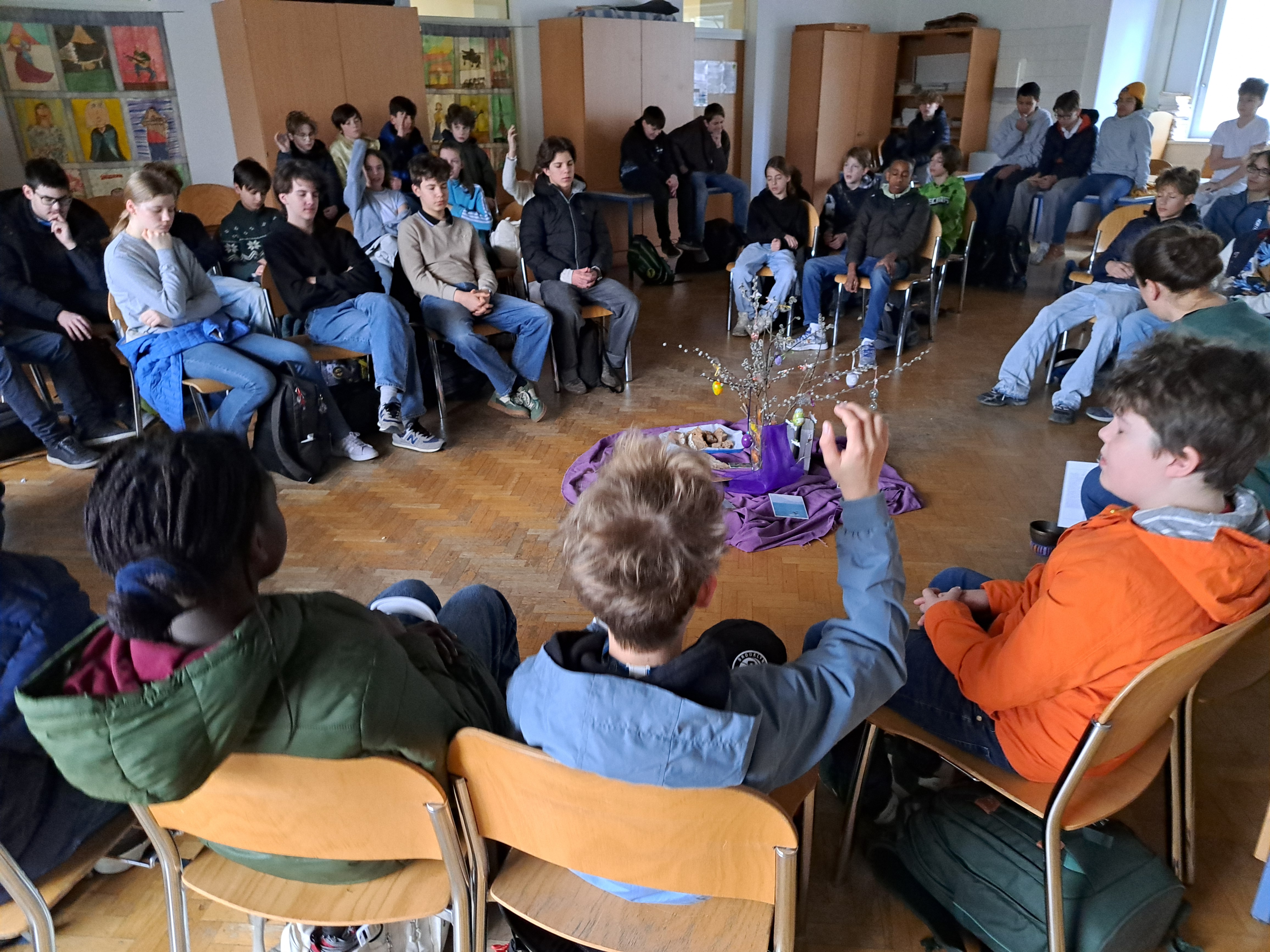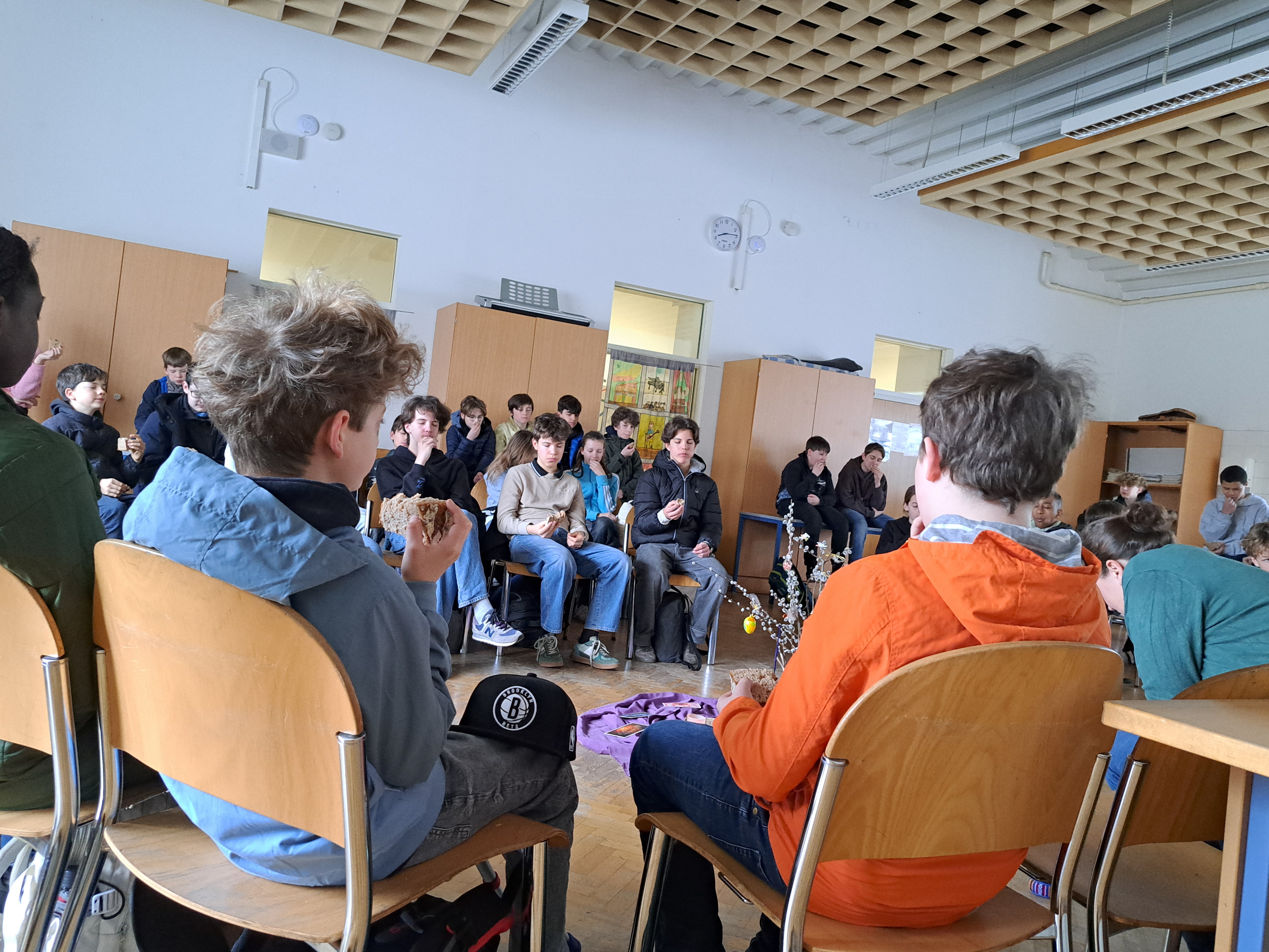 Schüler:innen treffen im Musiksaal ein...ich bin dabei beim Morgenstart mit Besinnung... |