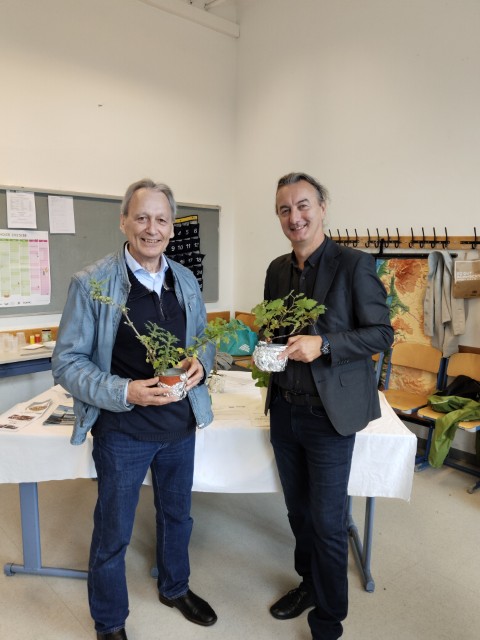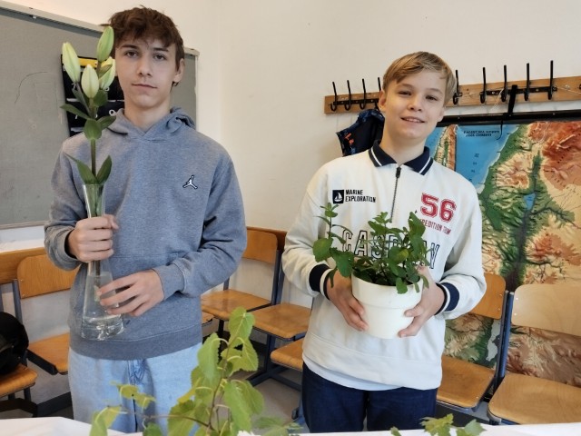 Julian (4A) und Severin (4C) mit Lilie und Minze für die anschaulichen Quizfragen. |