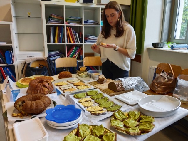 Annika G. (7A) beim Zubereiten des Brötchen Buffet mit u.a. ihrer köstlichen selbstgemachten Guacamole. |